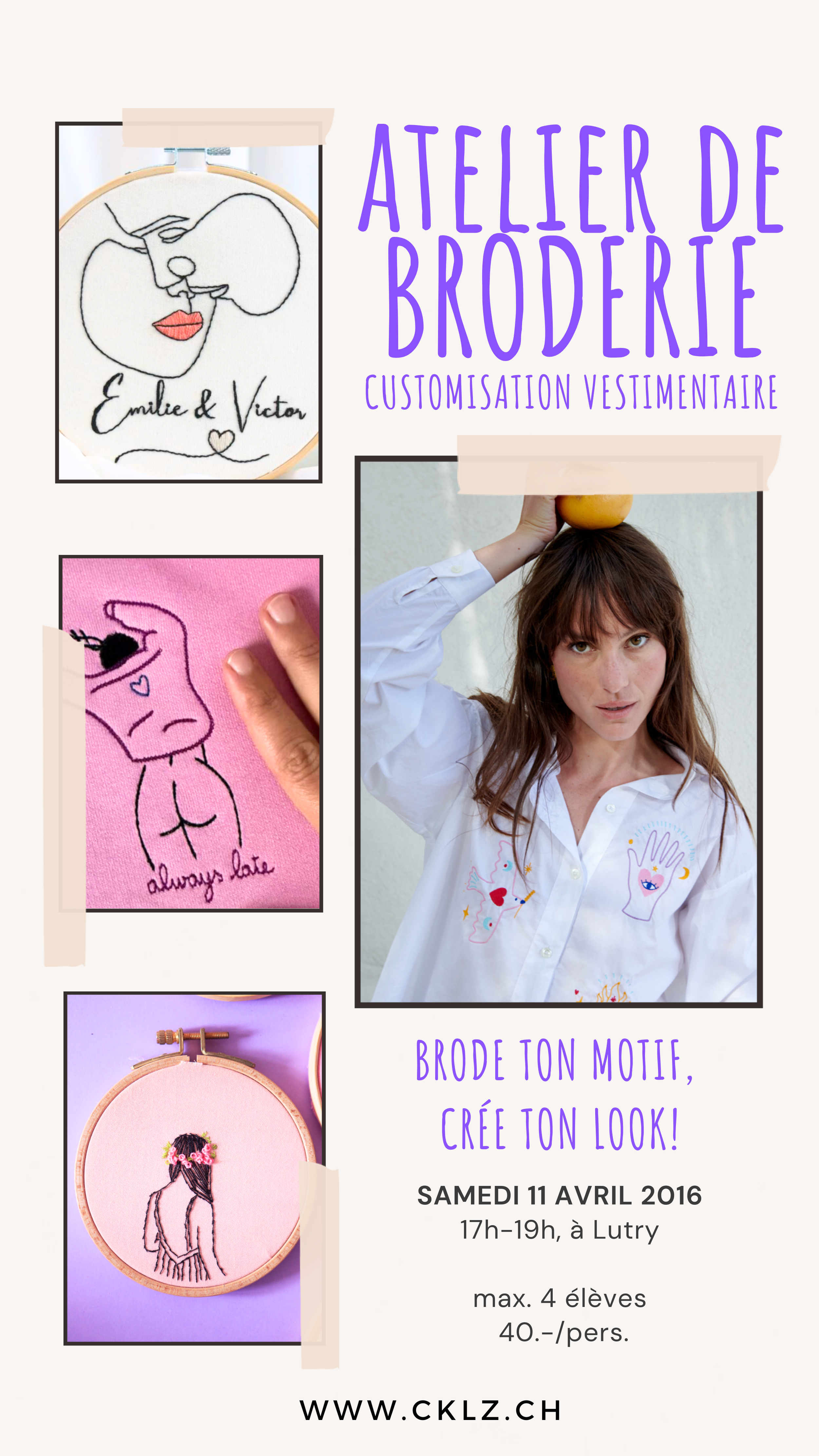 Cours spécial “SURJETEUSE”, à la demande. Cet atelier dure 2h30 et chaque élève repart avec un dossier et des échantillons (prix 75.-/élève).